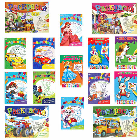 Книжка-Раскраска "ДЛЯ ДЕВОЧЕК И МАЛЬЧИКОВ", КОМПЛЕКТ 15 шт.,140х200 мм, 16 стр., ПП