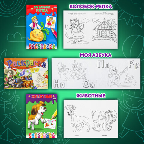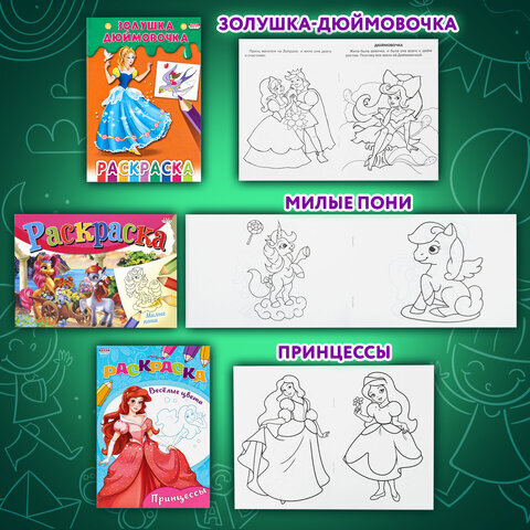 • В наборе книжек-раскрасок формата А5 "ДЛЯ ДЕВОЧЕК И МАЛЬЧИКОВ" представлено много интересных и увлекательных сюжетов. Дайте малышу цветные карандаши, краски или фломастеры, и он с удовольствием и пользой проведёт время!