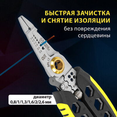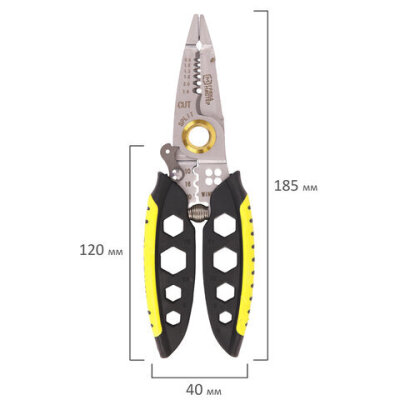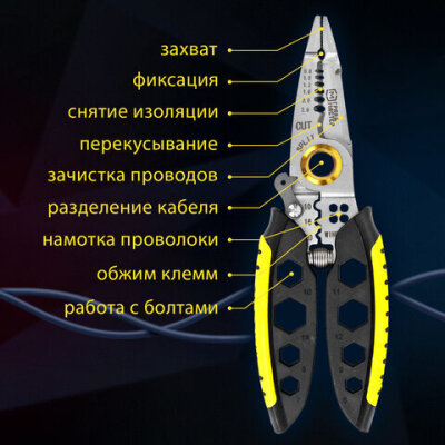 | Функции | зачистка кабеля, кримпера, разделение кабеля, резка кабеля, скручивание проводов, стриппера, фиксация предметов |