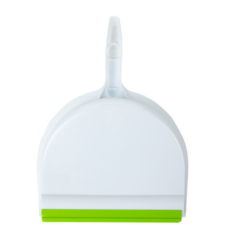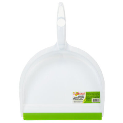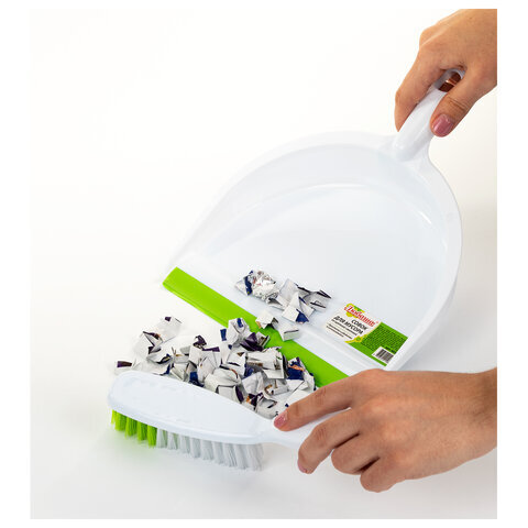 Совок для мусора КОМПЛЕКТ+ щетка сметка, пластиковые, резиновая кромка, бело-зеленый, ЛЮБАША, 603615