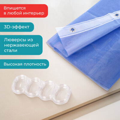 Шторка для ванной EVA, 180х200 см, кольца в комплекте, СИНИЕ ЛИНИИ, PRIMILA (ПРИМИЛА), 700106