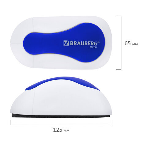 Стиратель магнитный для магнитно-маркерной доски (65х125 мм), BRAUBERG "JET", бело-синий, 238791