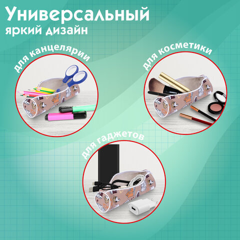 Пенал-тубус ПИФАГОР, мягкий, "HOLIDAY", 20х7 см, 229269