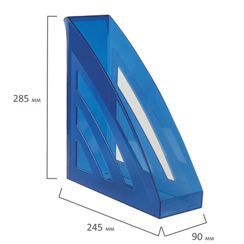Лоток вертикальный для бумаг BRAUBERG "Office style", 245х90х285 мм, тонированный синий, 237282
