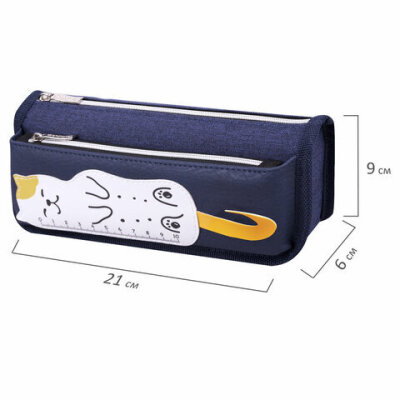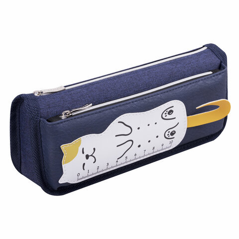 Пенал мягкий ЮНЛАНДИЯ, 2 отделения, полиэстер, "Cats rule", синий, 21х9х6 см, 271576