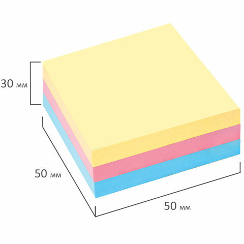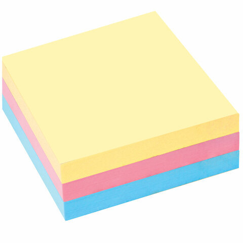 Блок самоклеящийся (стикеры) STAFF, 50х50 мм, 300 листов, 3 цвета, 127145