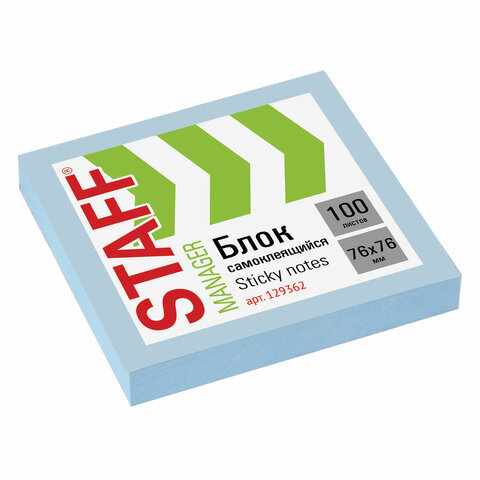 Блок самоклеящийся (стикеры) STAFF, 76х76 мм, 100 листов, голубой, 129362