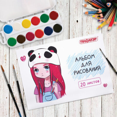• Альбом для рисования ПИФАГОР предназначен для детей дошкольного и младшего школьного возраста. Яркая, красочная обложка.