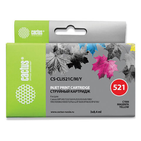 Картридж струйный CACTUS (CS-CLI521C/M/Y) для CANON Pixma MP540/630/980, комплект 3 цвета