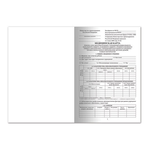 Медицинская карта ребёнка, форма №026/у-2000, 16 л., картон, А4 (200x280 мм), белая, STAFF, 130210