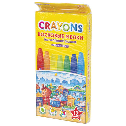 Восковые мелки утолщенные на масляной основе ЮНЛАНДИЯ "ДОМИКИ", 12 цветов, 273090