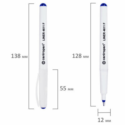 Ручка капиллярная (линер) СИНЯЯ CENTROPEN "Liner", трехгранная, линия письма 0,3 мм, 4611, 2 4611 0106