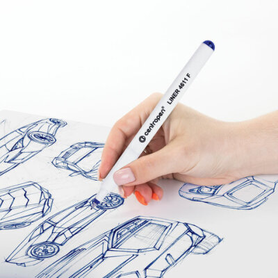 Лайнер с новым эргономичным дизайном. Предназначен для письма, эскизов, тонкого черчения. Ручка пишет очень тонкой равномерной линией, оставляя четкий контрастный след.