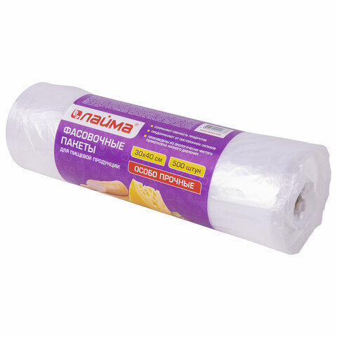Пакеты фасовочные 30х40 см КОМПЛЕКТ 500 шт., ПНД, 15 мкм, ОСОБО ПРОЧНЫЕ, рулон на втулке, LAIMA, 605954