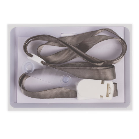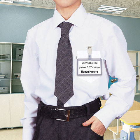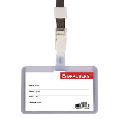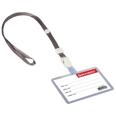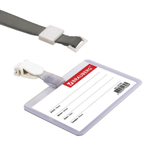 Бейдж школьника горизонтальный (55х90 мм), на ленте со съемным клипом, СЕРЫЙ, BRAUBERG, 235765