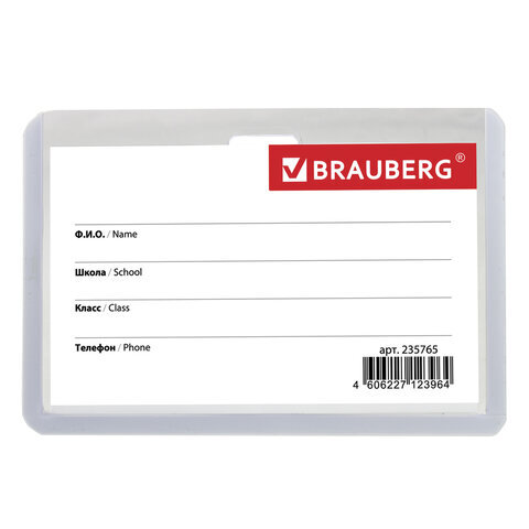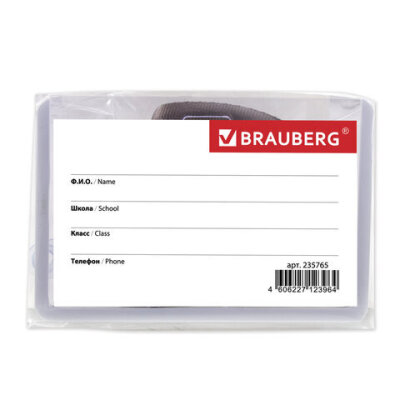 Горизонтальный бейдж школьника BRAUBERG с цветной окантовкой используется для идентификации учащегося в образовательных учреждениях.