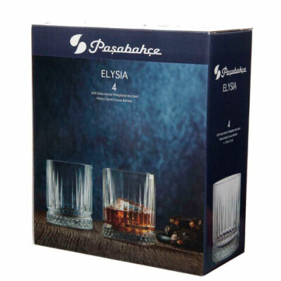 Стакан низкий, объем 355 мл, КОМПЛЕКТ 4 штуки, стекло, PASABAHCE "ЭЛИЗИЯ", фирменная подарочная упаковка, 520004