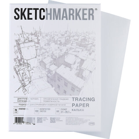 Калька А4 для печати и творчества, 70 г/м2, 100 листов, SKETCHMARKER, SM17118