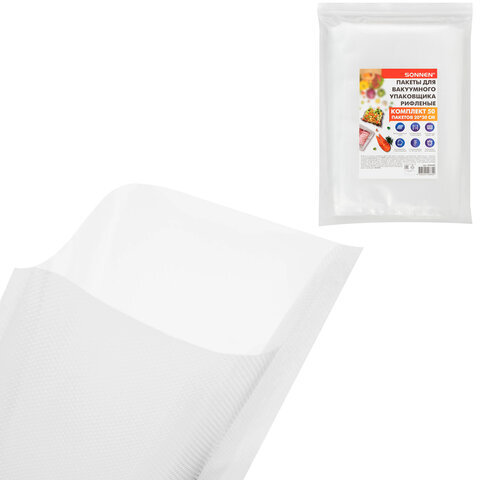 Пакеты для вакуумного упаковщика рифленые 20х30 см, КОМПЛЕКТ 50 шт., SONNEN, максимальный вакуум, 456342