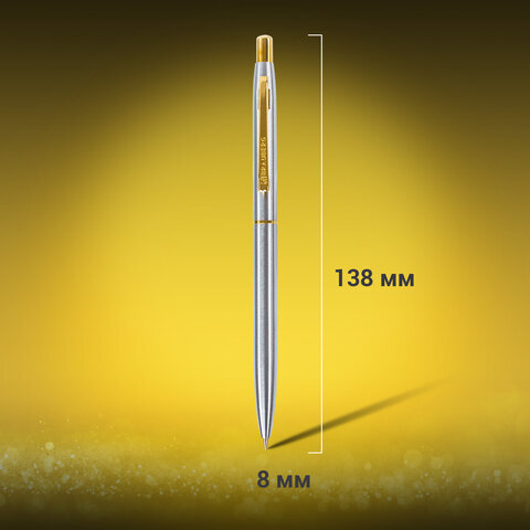 Ручка подарочная шариковая BRAUBERG Brioso, СИНЯЯ, корпус серебристый с золотистыми деталями, линия письма 0,5 мм, 143463