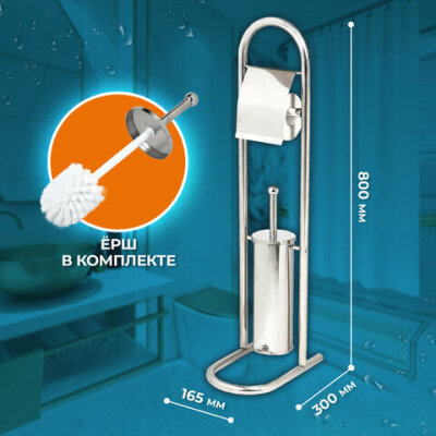 Эргономичная напольная стойка с держателем для туалетной бумаги и подставкой с ершом в комплекте. Изготовлено из нержавеющей стали 304 высокого качества. Зеркальная поверхность впишется в любой интерьер Прочная упаковка в термоусадочной пленке.