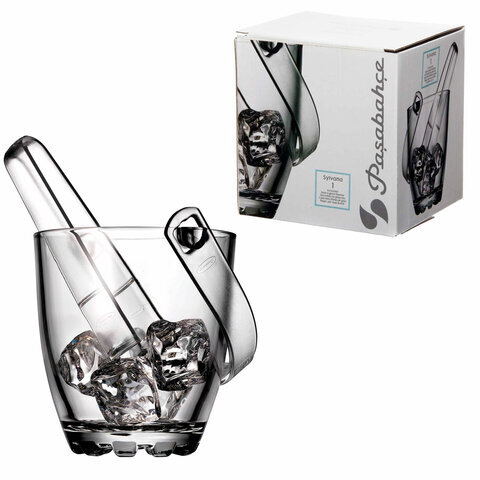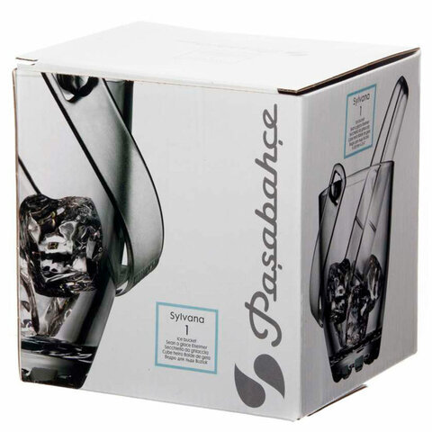Ведерко для льда стеклянное, с пластиковыми щипцами, высота 130 мм, PASABAHCE "СИЛЬВАНА", фирменная подарочная упаковка, 53628