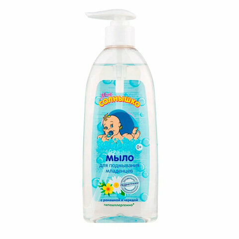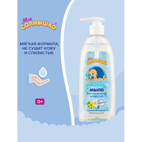 Мыло жидкое для подмывания младенцев гипоаллергенное с ромашкой и чередой 400 мл, МОЕ СОЛНЫШКО, 1794