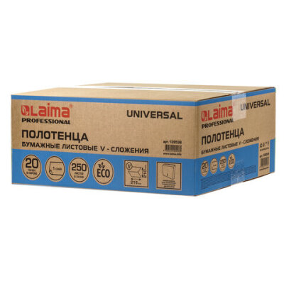 Полотенца бум. 250шт, LAIMA (H3) UNIVERSAL, 1-слойные, натуральный цвет, КОМПЛЕКТ 20 пачек, 21х21,6, V-сложение, 129538