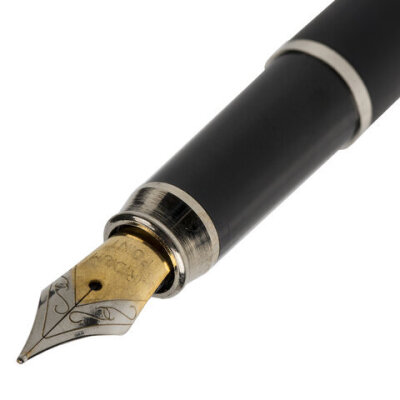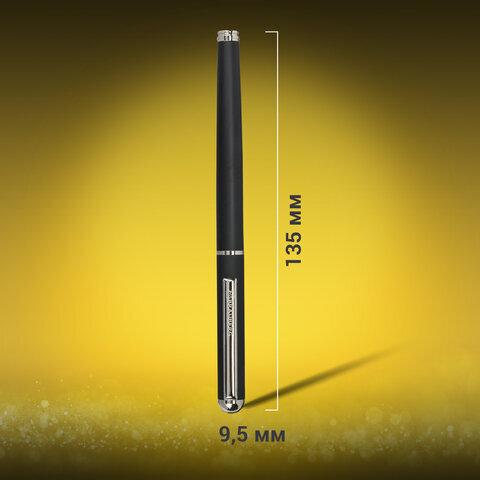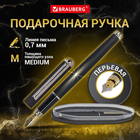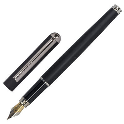 Ручка подарочная перьевая BRAUBERG "Larghetto", СИНЯЯ, корпус черный с хромированными деталями, 143477