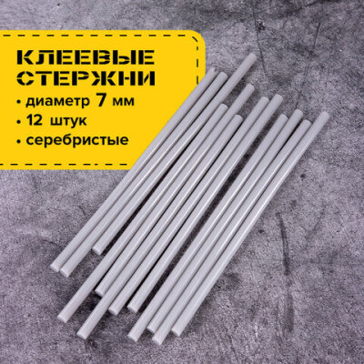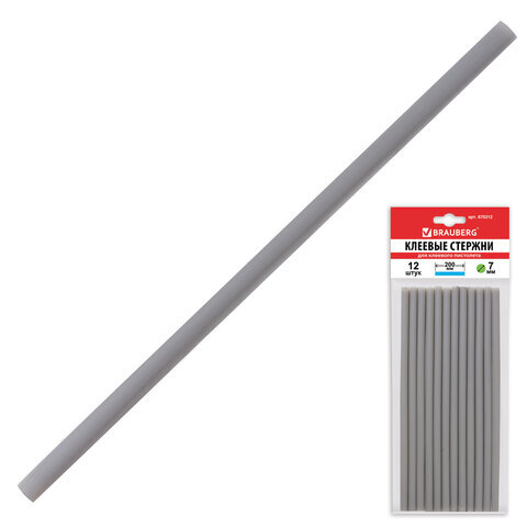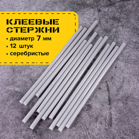 Клеевые стержни, диаметр 7 мм, длина 200 мм, серебристые, комплект 12 шт., BRAUBERG, европодвес, 670312