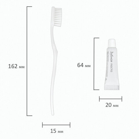 В наборе: зубная щетка, зубная паста в тюбике 5 г.
