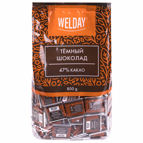 Шоколад порционный высшего качества WELDAY (ВЭЛДЭЙ) "Тёмный 47%", 800 г (160 плиток по 5 г), пакет, 622407