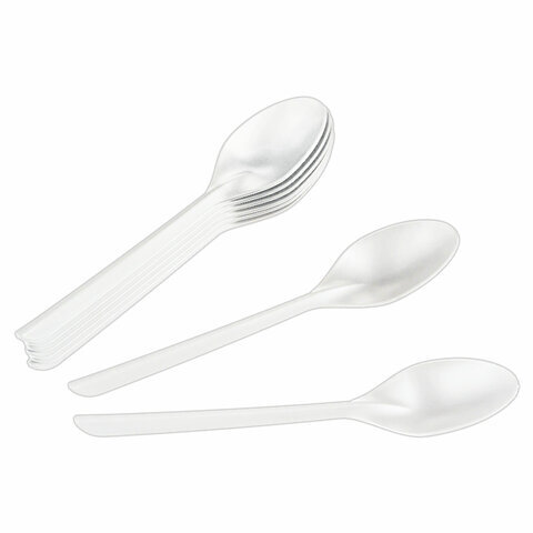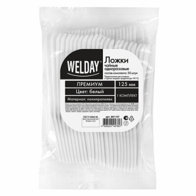 Ложка чайная одноразовая полипропиленовая 125 мм белая, КОМПЛЕКТ 50 шт., ПРЕМИУМ, WELDAY (ВЭЛДЭЙ), 881107