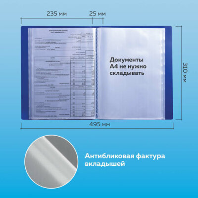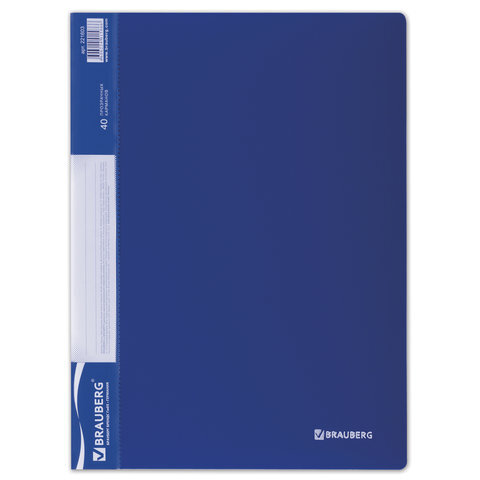 Папка 40 вкладышей BRAUBERG стандарт, синяя, 0,7 мм, 221603