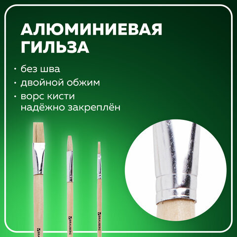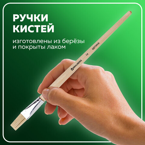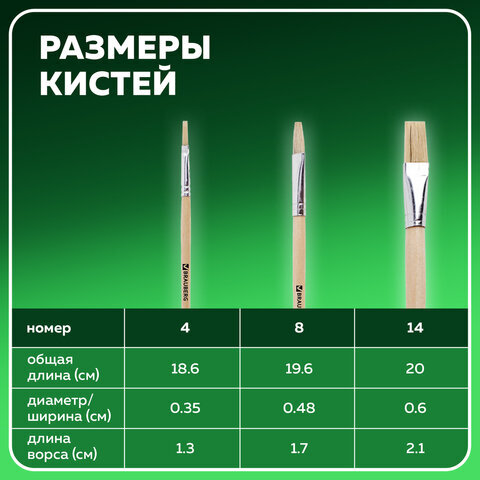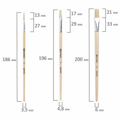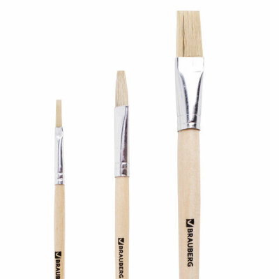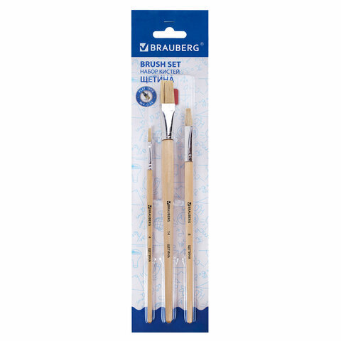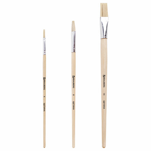 Кисти BRAUBERG, набор 3 шт. (щетина, плоские № 4, 8, 14), блистер, 200223