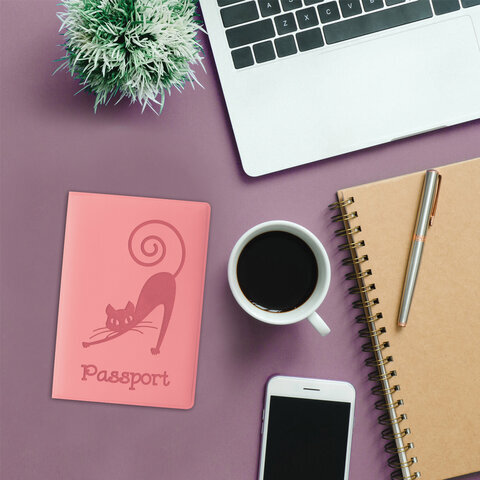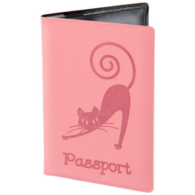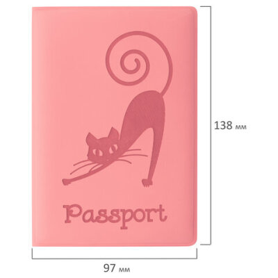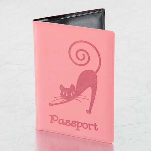Обложка для паспорта, мягкий полиуретан, "Кошка", персиковая, STAFF, 237615