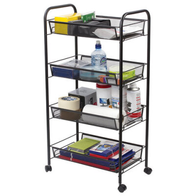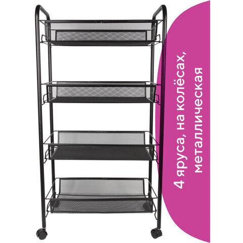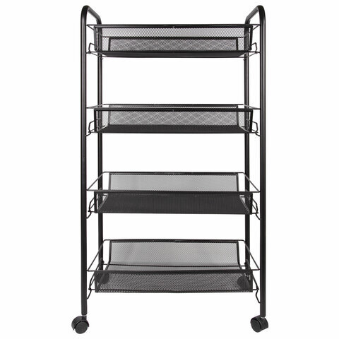 Этажерка (тележка) BRABIX офисно-бытовая 4 яруса, на колесах, металл, черная, 43,5х26х83,5 см, 603753