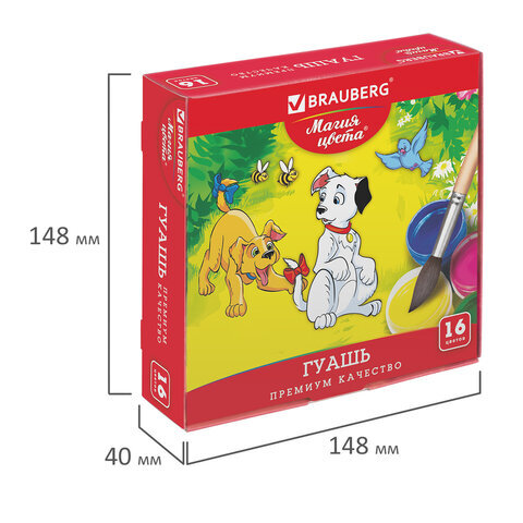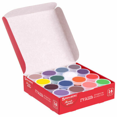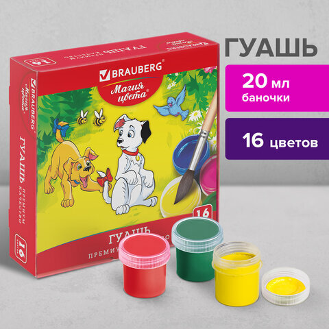 Гуашь BRAUBERG "МАГИЯ ЦВЕТА", 16 цветов по 20 мл, 191334