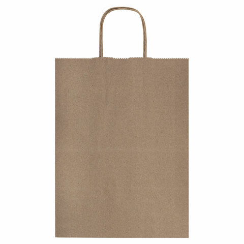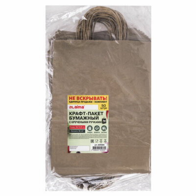 Крафт-пакет бумажный 26х15х35 см, КОМПЛЕКТ 50 шт., крученые ручки, плотность 90 г/м2, LAIMA ECO CRAFT, 609686