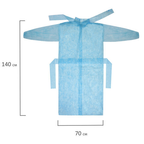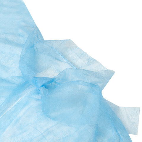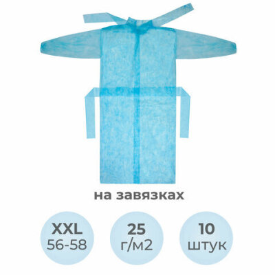 Халат одноразовый голубой на завязках КОМПЛЕКТ 10 шт., XXL, 56-58 размер, 140 см, рукав на резинке, 25 г/м2, СНАБЛАЙН