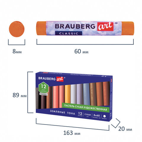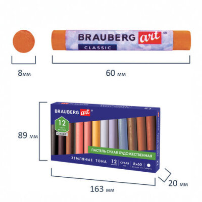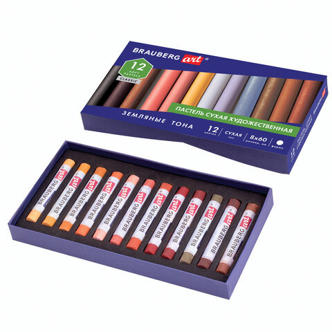 Пастель сухая художественная BRAUBERG ART CLASSIC, 12 цветов, ЗЕМЛЯНЫЕ ТОНА, круглое сечение, 181457