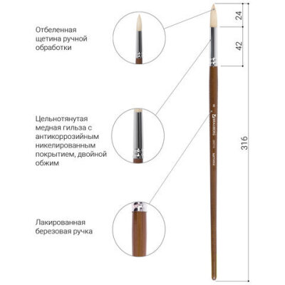Художественная профессиональная кисть BRAUBERG ART "CLASSIC" № 8 предназначена для работ густыми красками: гуашь, акрил, масло, темпера.