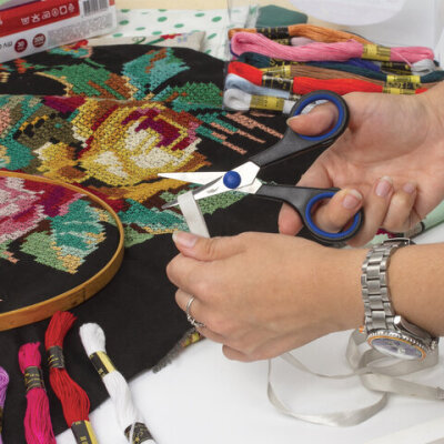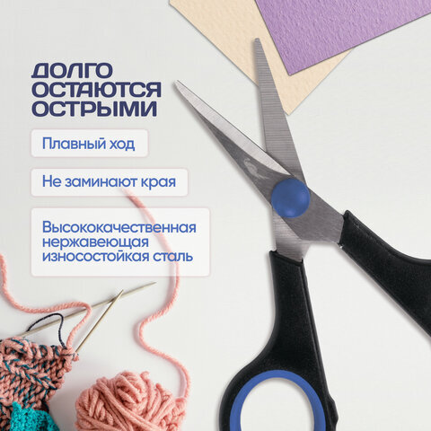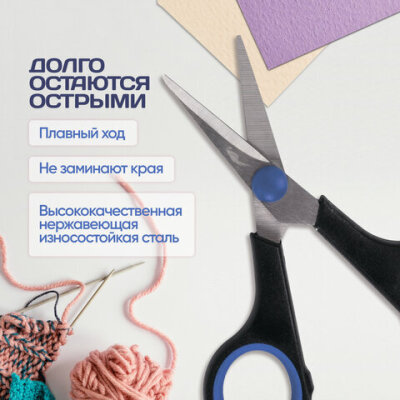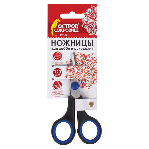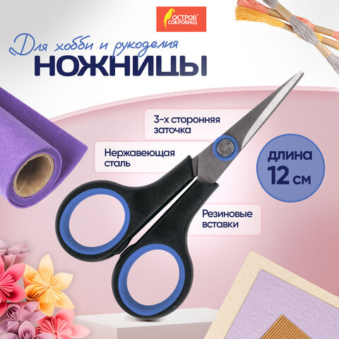 Ножницы для хобби и рукоделия ОСТРОВ СОКРОВИЩ 120 мм, 3-х сторонняя заточка, черно-синие, 237104