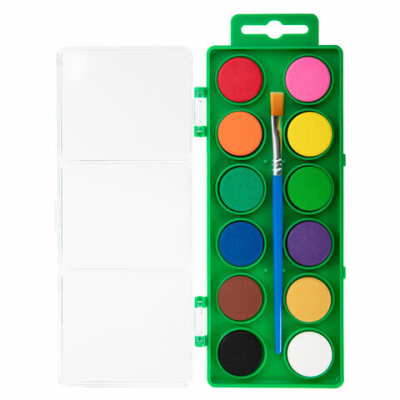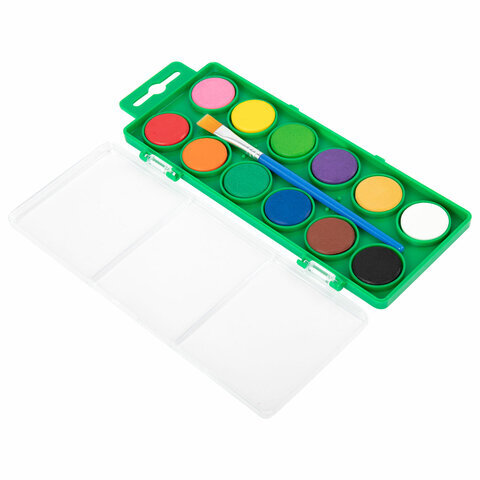 Краски акварельные BRAUBERG KIDS, 12 ярких цветов, круглые кюветы, пластиковый пенал, 191806