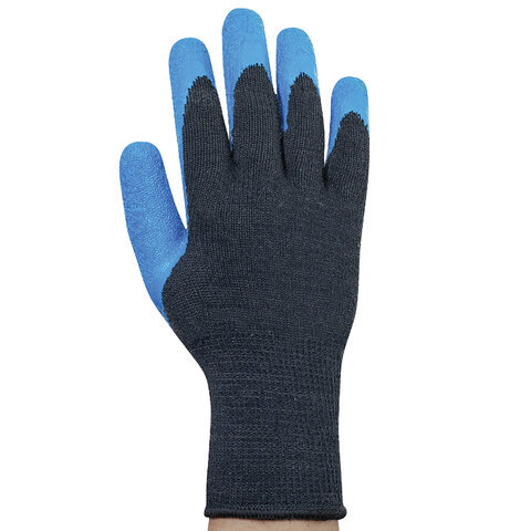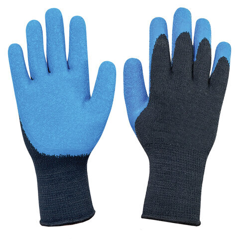 Перчатки хлопок + полиэфир УТЕПЛЕННЫЕ, 1 пара, 10 класс, 105-110 г, размер 10, покрытие - облив РЕЛЬЕФНЫЙ ЛАТЕКС, прочные, усиленные, СВС, ct32wl черн/син