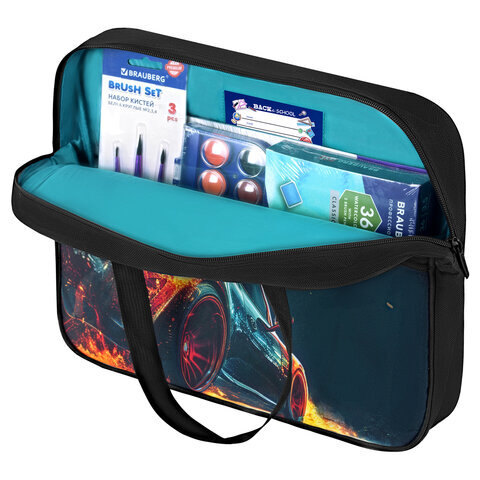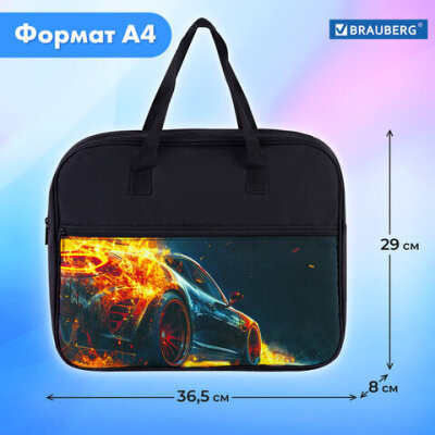 Папка на молнии с ручками BRAUBERG А4, 1 отделение, карман на молнии, 80 мм, "Speed increase", 273312