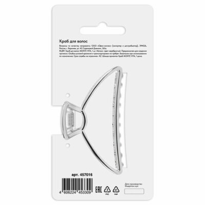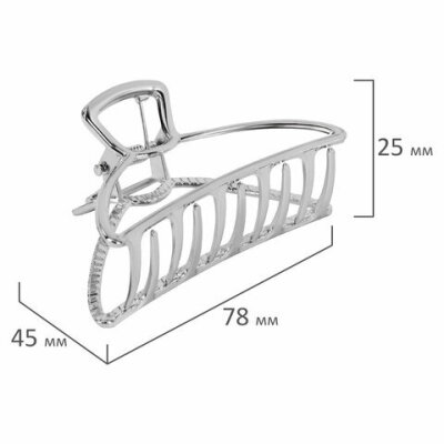 Краб для волос 7,8 см, серебристый, MONTE VITA (МОНТЕ ВИТА), 457016