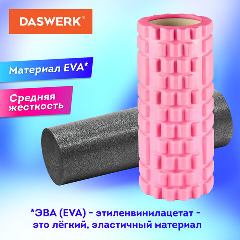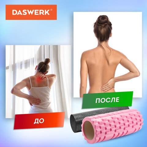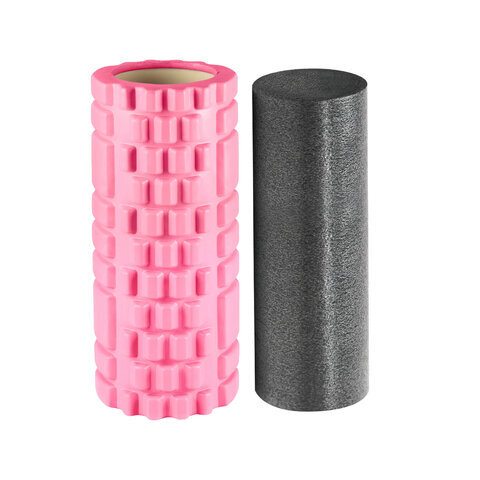 Массажные ролики для йоги и фитнеса 2 в 1, фигурный 33х14 см, цилиндр 33х10 см, розовый/чёрный, DASWERK (ДАСВЕРК), 680025