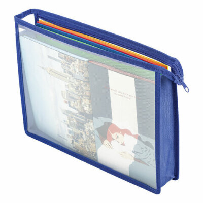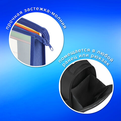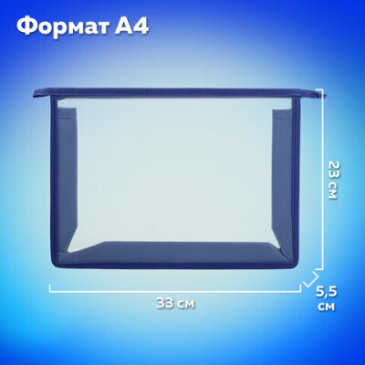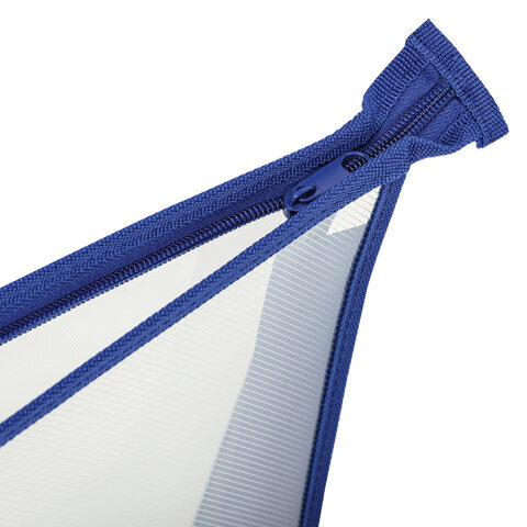 Папка для тетрадей А4 ПИФАГОР, пластик, молния сверху, прозрачная, синий, 272109