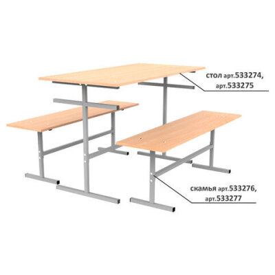Стол для столовых "ССТ 1200" удобен, практичен, неприхотлив в обслуживании, идеально подходит для школ и других заведений. На каркасе предусмотрены кронштейны для компактного размещения скамьи под крышкой стола. Столешница ЛДСП.